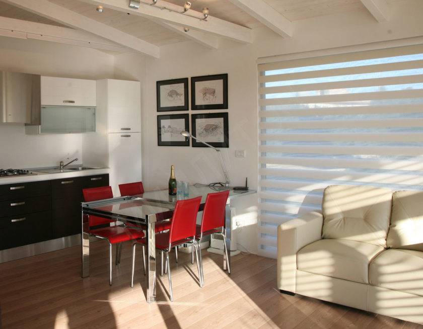 Бамбуковые и деревянные рулонные шторы не рекомендуется использовать в интерьере кухни, так как они будут впитывать запахи и кроме того, при неосторожном обращении их можно легко повредить