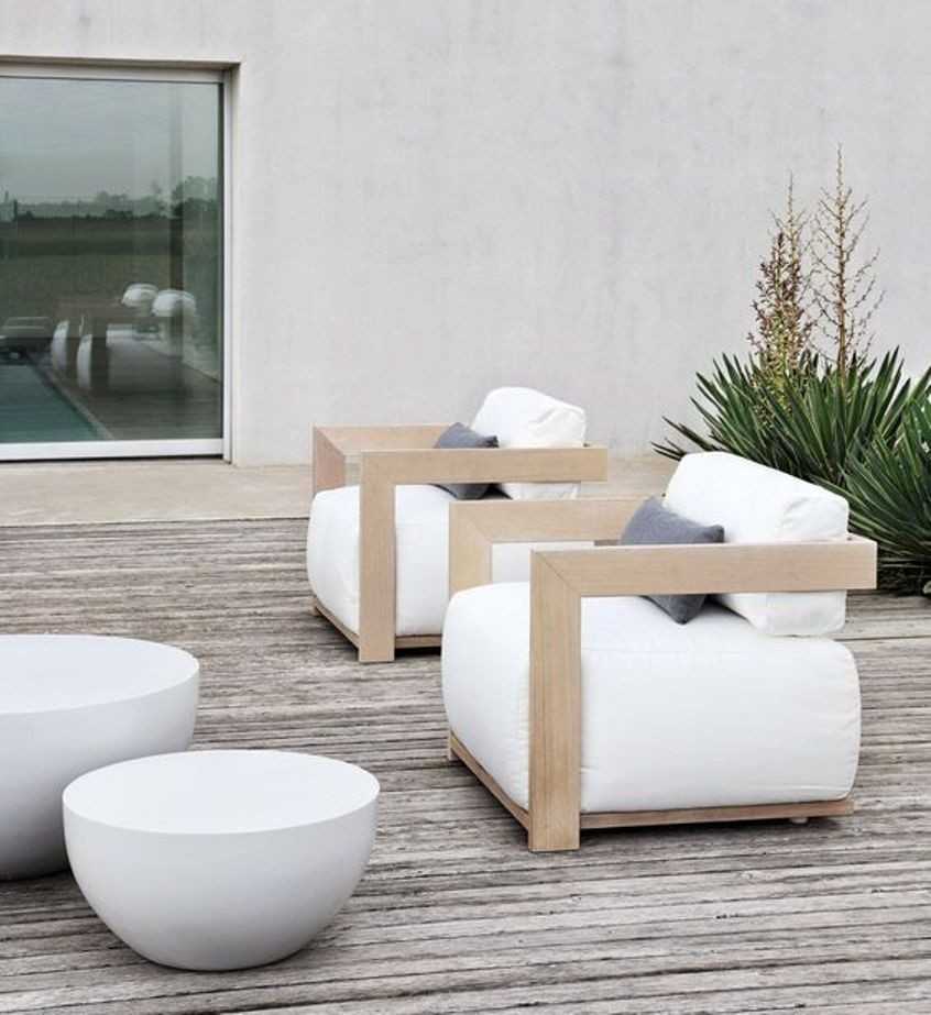Сбив из обычных обрезных досок каркасы для кресел и дивана и уложив на них мягкие подушки, можно получить отличную садовую мебель для вашего загородного дома