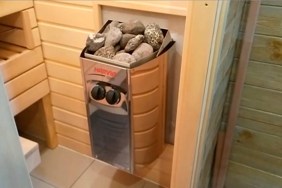 После постройки кабины сауны и ее отделки вагонкой можно устанавливать печь. Специалисты рекомендуют не рисковать и приобрести заводскую модель электрического типа. Ее мощность должна рассчитываться исходя из объема парилки, в соотношении примерно 1 к 2. То есть, для 20 м³ понадобится устройство мощностью 10-12 кВт
