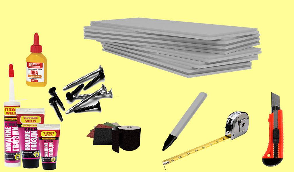 - клей или жидкие гвозди, подходящие для работы с этим материалом;