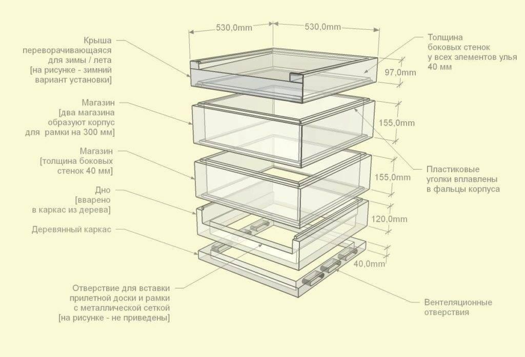 Только при выполнении правильного расчета размеров каждой детали обеспечит правильное построение улья, поскольку правильный расчет – это важнейшее правило изготовления домика для пчел. Поэтому бортникам, решающим вопрос о построении улья для пчел, необходимо точно по размерам изготавливать каждую деталь, в особенности, для внутренних элементов конструкции.