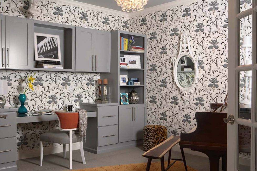 Серые обои прекрасно уживаются с другими цветами, позволяют осуществить любую задумку