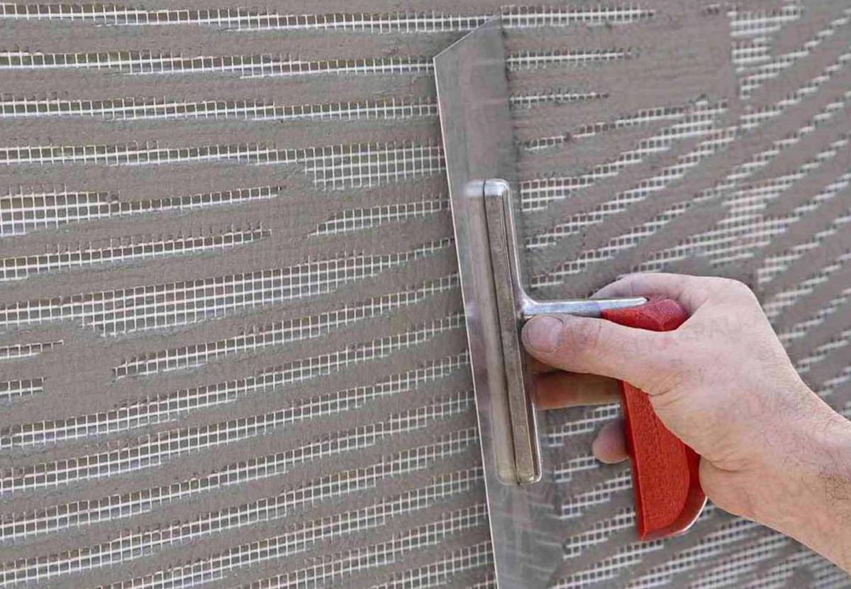 - шпаклевочная. Плотность значительно выше — 145-160 г/см3. Ячейки от 5х5 до 10х10 мм. Находит применение при утеплении фасадов базальтовой ватой или полиэтиленом, реставрации здания, гидроизоляции фундамента и цоколя;