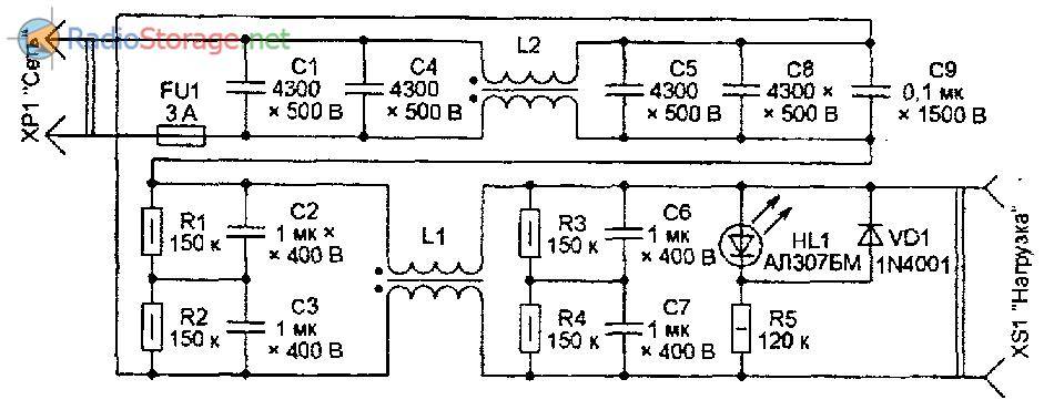 Само название этой электронной схемы объясняет ее назначение. Слово «фильтр» указывает на отсеивание вредных помех, а «сетевой» — определяет их источник.