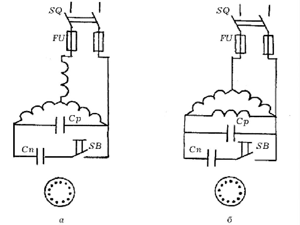 Подключение однофазного двигателя: схема с двумя конденсаторами — рабочим и пусковым