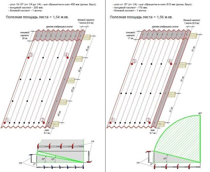 - ондулин можно использовать для покрытия при угле наклона в 5–10 градусов. Здесь и обустраивается сплошная обрешетка. МЧ допускается укладывать при минимальном угле наклона в 12 градусов;