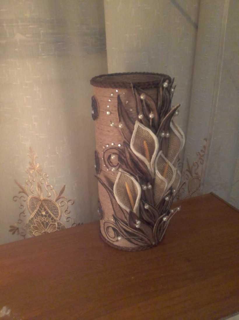 Также джутовый шпагат подойдёт для оформления табурета, пуфика и различных емкостей.