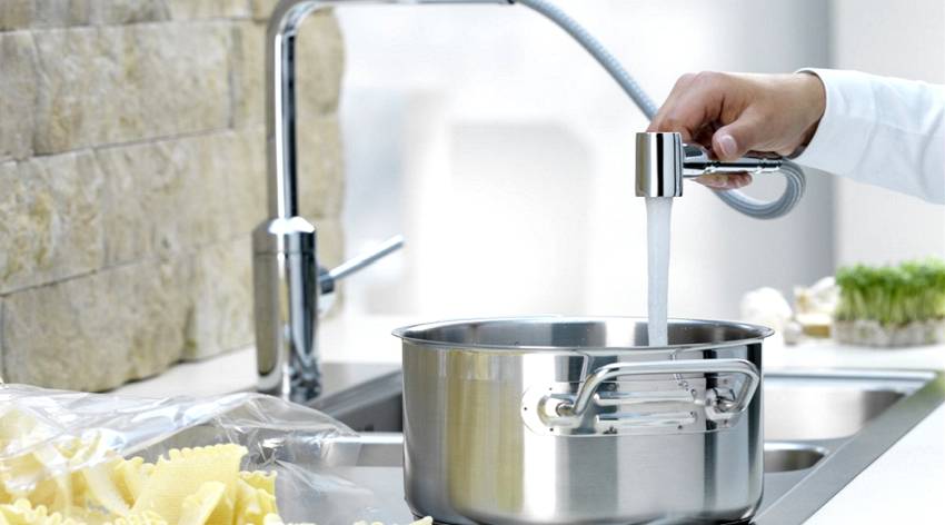 Приобретать современные модели проверенных производителей. Купить смеситель для кухни с гибким изливом лучше немецкого (Grohe, Hansgrohe) или французского (Jacob Delafon) изготовления.