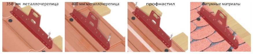 Кронштейны следует устанавливать на расстоянии не более 1100мм. Различные крепёжные элементы позволяют монтировать их на любые типы кровли