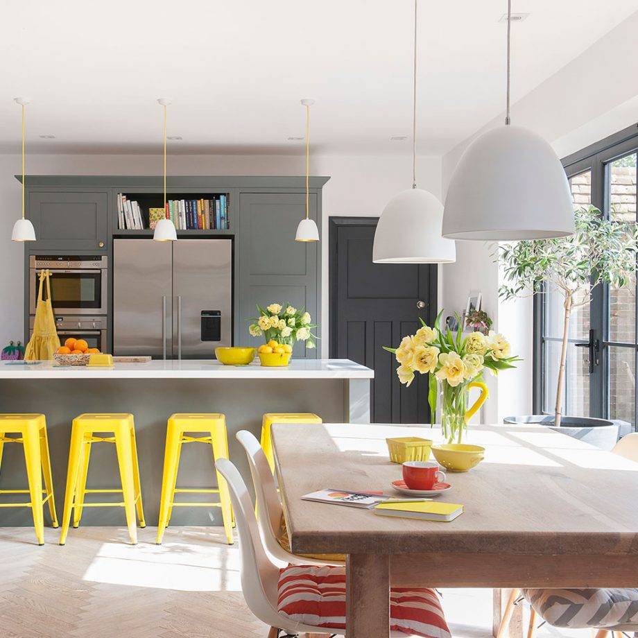 Очень яркое и красочное сочетание цветов, ведь жёлтый оттенок всегда несёт в себе радость солнца и приподнятое настроение. Сочетание такой палитры очень часто используется в современных дизайнах кухни. Выглядит стильно и позитивно.