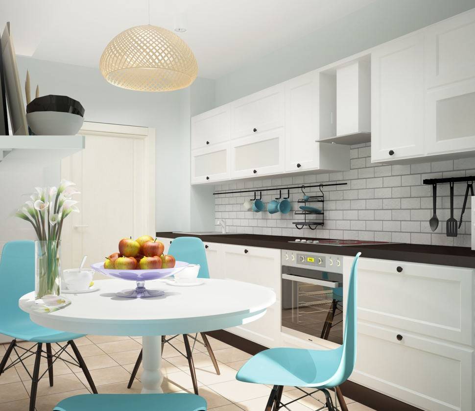 Белый. Отличный вариант для оформления кухни, но следует помнить, что основной фон нужно обязательно разбавлять яркими акцентами, в противном случае кухня будет напоминать больничную палату.