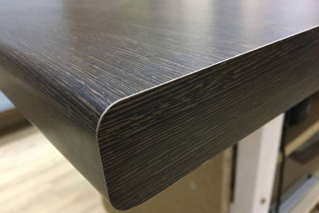 Получившиеся кромки на поверхности из ДСП, искусственного камня, дерева обязательно герметизируют. Особенно важно это для ламинированных поверхностей – попадание влаги внутрь приведет к набуханию и разрушению конструкции.