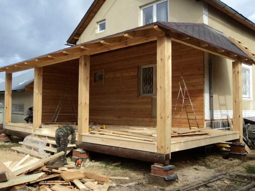 Основательная заделка швов должна производиться лишь после полной усадки вновь построенной веранды. Для обустройства крыши закрытой веранды под кровельные листы обязательно должен быть положен теплоизоляционный материал.