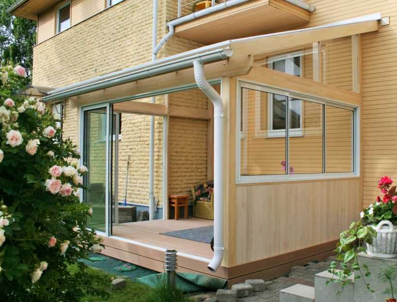 - пристройка даёт возможность находиться на свежем воздухе даже при неблагоприятных погодных условиях.
