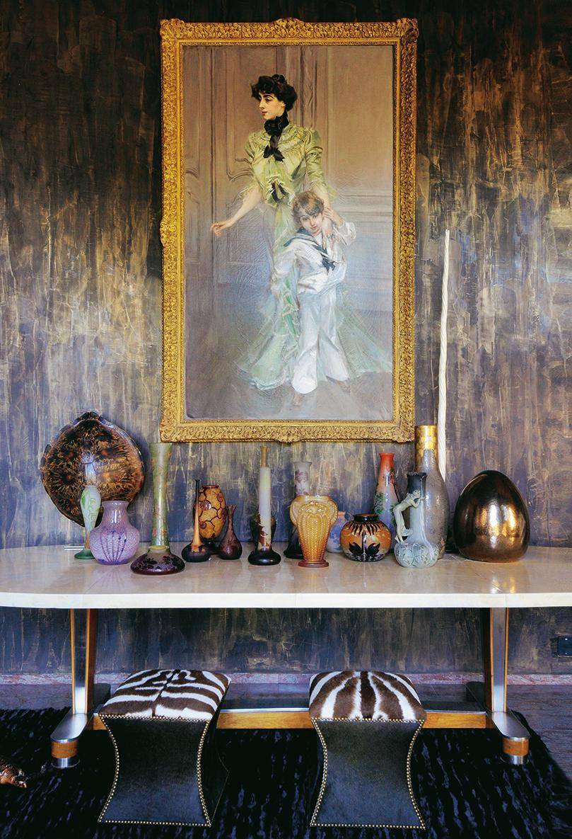 - Обилие фактур и гармоничное сочетание изысканного декора с массивными аксессуарами, комбинация дерева с позолотой и стеклом.