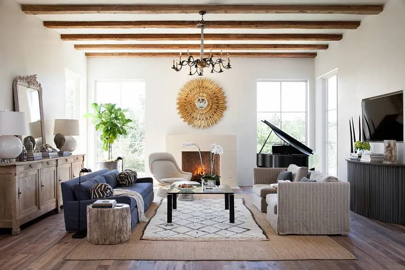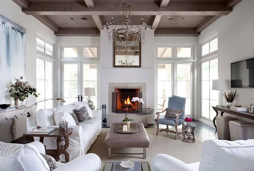 - Камин в гостиной будет плюсом, но если комната не такая большая, как хотелось бы ‒ его можно заменить огромной картиной или зеркалом.