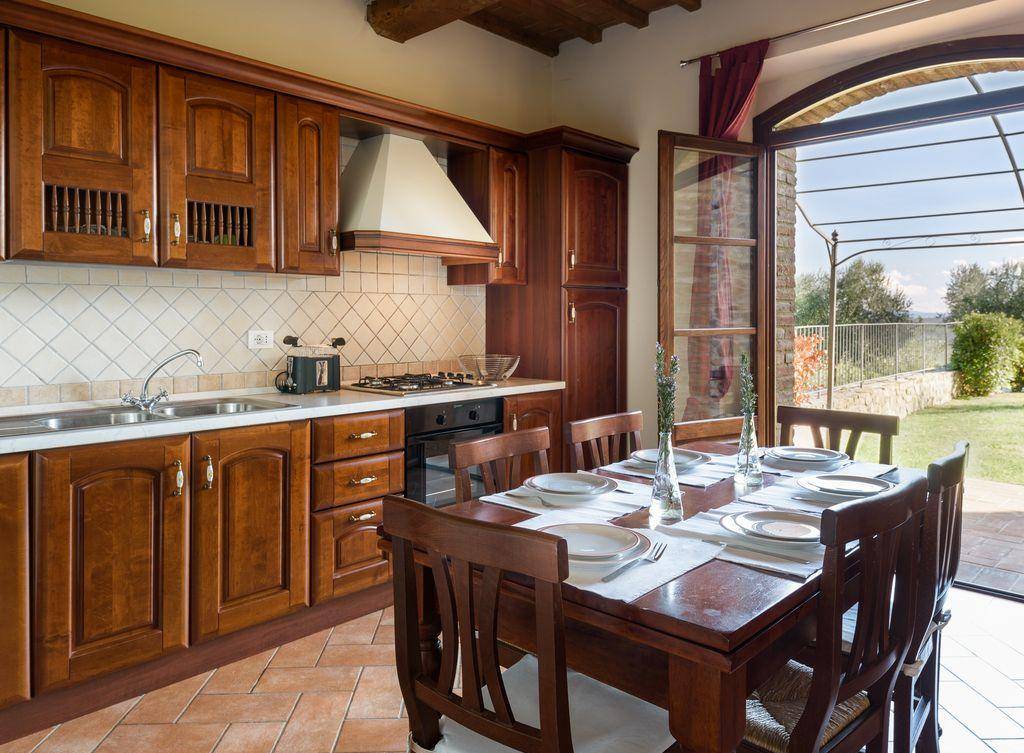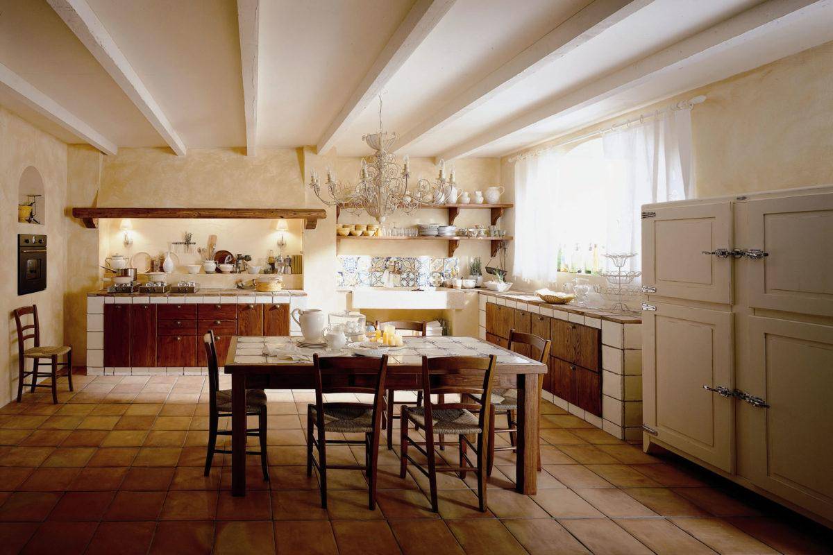 - Натуральные материалы и характерные для них цвета. Яркие броские акценты обычно не используются. Основные материалы – дерево, керамика (в том числе плитка), камень, штукатурные смеси и краски. В Италии плитку применяют не только в декоре кухни и санузла, но и в жилых комнатах. Часто ею оформляют пол и нижнюю часть стен.
