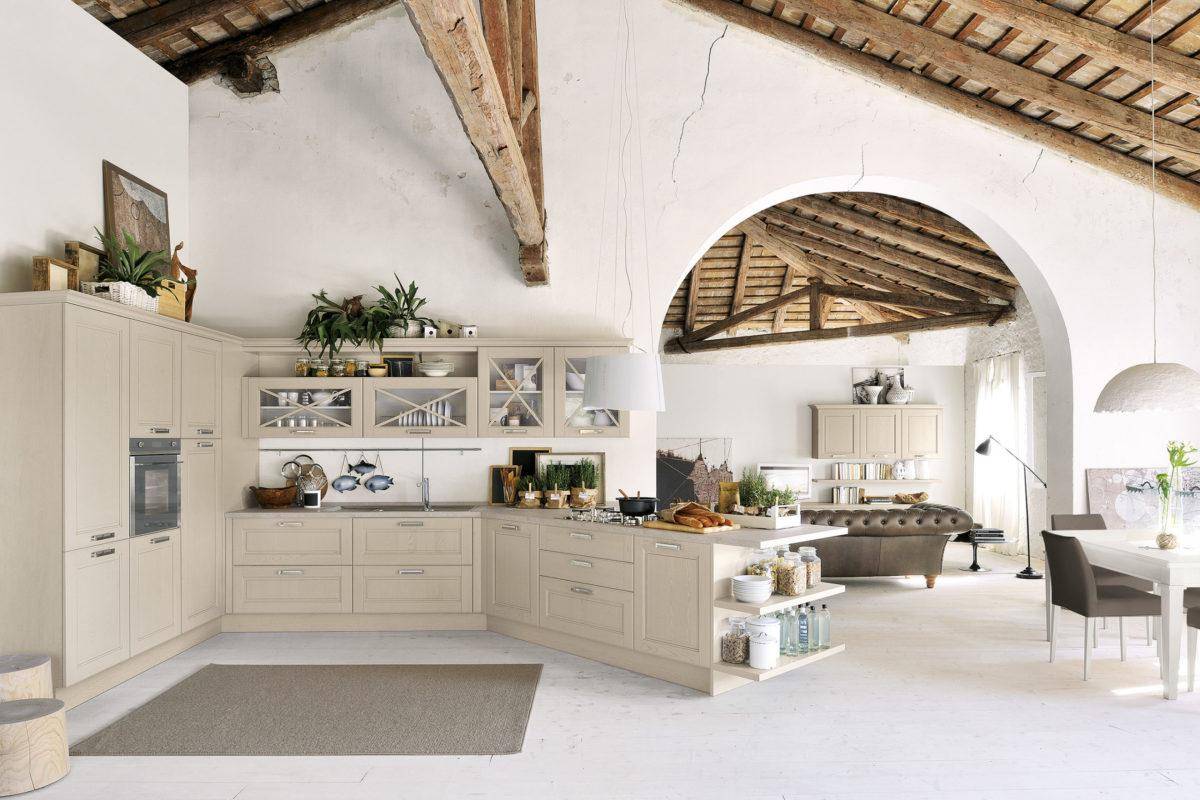 Итальянцы любят объединять в одном просторном помещении несколько функциональных зон. Если габариты кухни позволяют, на ней рекомендуется обустроить зону для приёма гостей. Кухня-гостиная в итальянском стиле может быть обустроена и в квартире-студии: в этом случае рациональным будет островное размещение обеденной зоны (она будет отделять кухню от спальни).