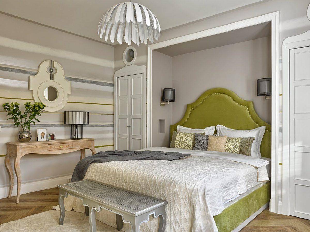 В спальне будет уместен текстиль глубоких приглушённых оттенков – тёмно-зелёного, оливкового, синего. Он используется в декоративных подушках, занавесках, постельном белье. Такие оттенки помогут настроиться на сон и расслабиться после утомительного дня.