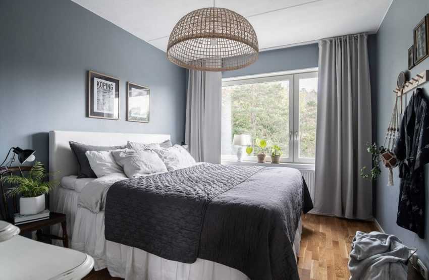 Здесь гораздо больше вариаций для отделки. Желательно, чтобы основным тоном был светлый, но из холодной палитры – серый, белый, голубой, мятный. Каждый из них наполнит спальню свежестью и поддержит световой баланс.