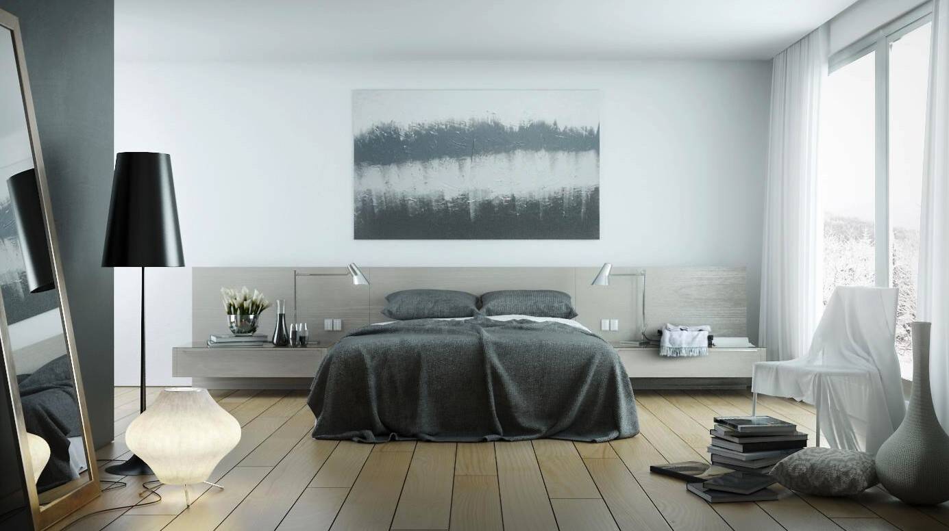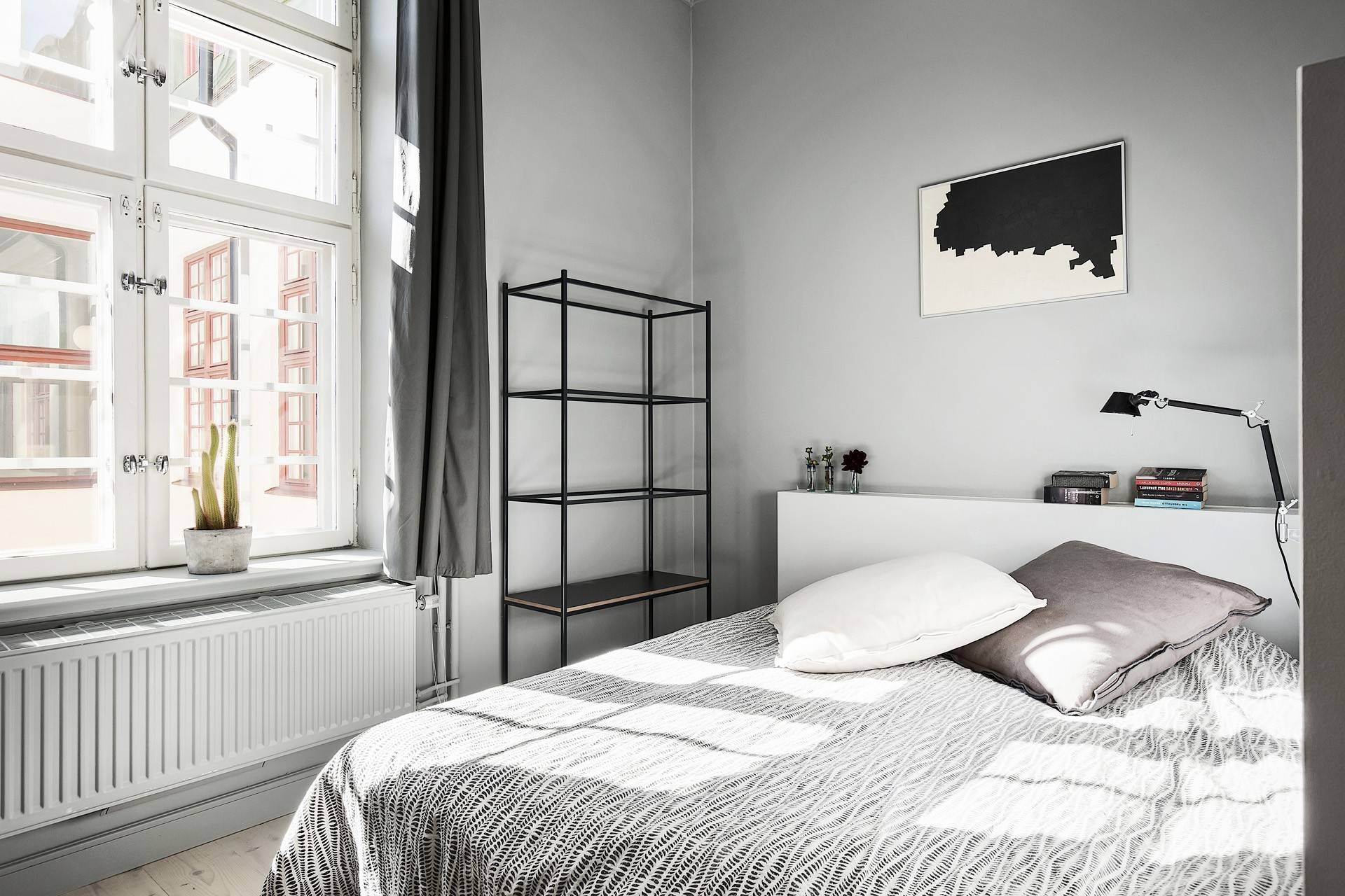 По-настоящему интересный дизайн можно создать в серой спальне в скандинавском стиле. Различные элементы мебели на таком фоне будут смотреться намного выразительнее и ярче.