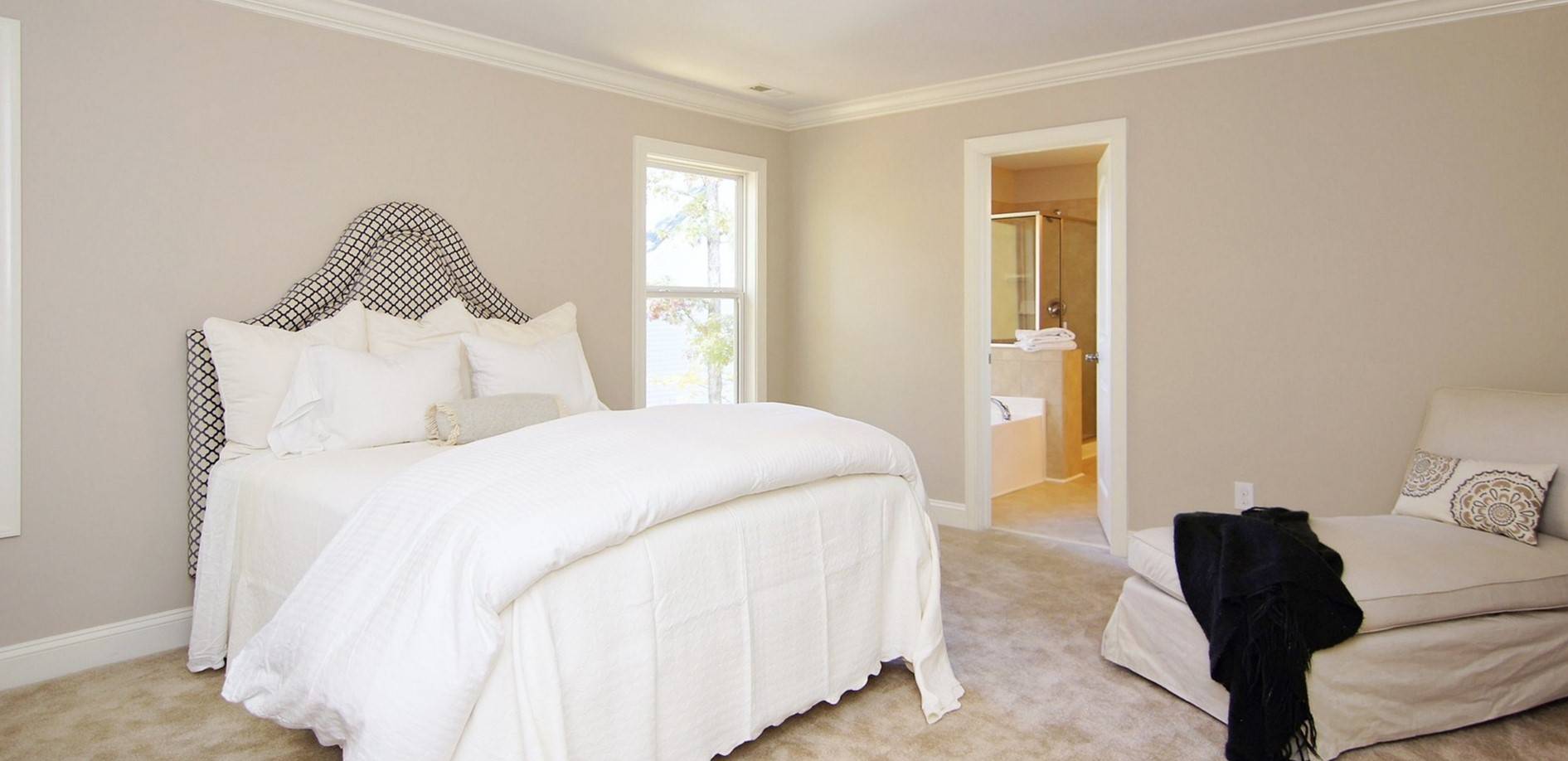 Беж. Это решение позволит выделить элегантность спальни. Беж можно применять для оформления пола с обоями такого же цвета. Его принято объединять с оттенками персика, кофе, малины и фисташки. Чтобы спальня была по максимуму романтичной, нужно не перегружать беж тяжелой кроватью и темным текстилем. Когда задача напротив, сделать необычные акценты на нежном фоне, тогда стоит купить золотистую тюль, оформить декоративный свет и повестить яркие панно.