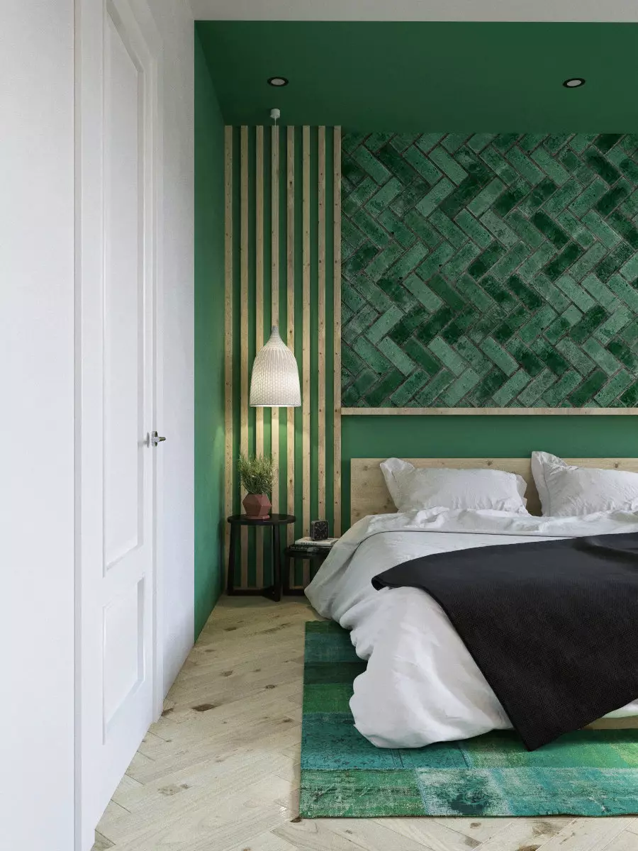 Можно сделать акцентную стену у изголовья кровати (или в любом другом месте):