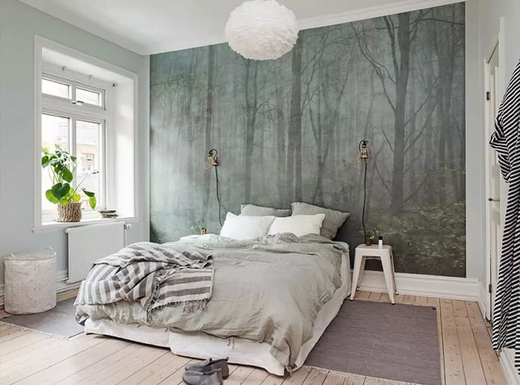 Вот так обои в спальне (какими бы они не были) будут дополнять, а может и в полной мере выражать скандинавский стиль в спальне. Это удобно, не правда ли?