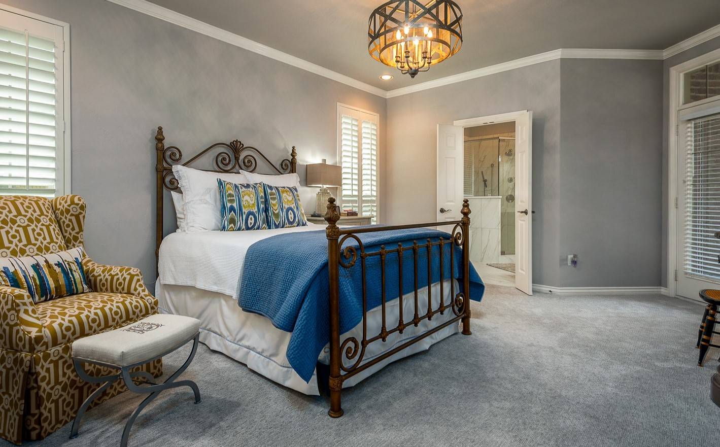 Синяя. Оттенки голубого нередко встречаются в спальнях. Синий действует успокаивающе. Поэтому он и является настолько актуальным в интерьерном оформлении спальни.