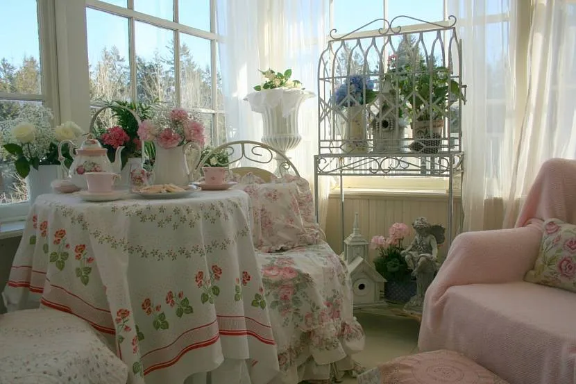 На все горизонтальные возвышенности стоит расставить цветы, статуэтки, расстелить кружевные салфетки. Стильное решение – клетка, оформленная в стиле шебби шик. Клетка – необычный декор, но очень уместный в данном дизайне.
