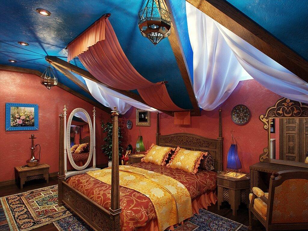Арабское и индийское направления допускают разнообразную цветовую гамму. При этом палитра должна сочетаться, обеспечивая гармонию и положительные эмоции.