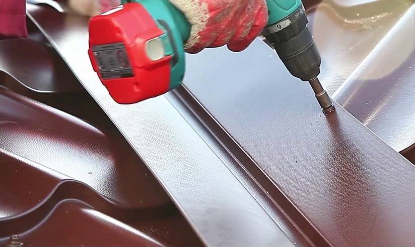 Такая планка прикручивается к торцевой доске. Последняя должна выступать выше обрешетки крыши на высоту профиля по рисунку металлического листа. Планка сверху и сбоку крепится на торцевую доску. В местах стыковки нахлест соседних элементов должен быть от 7 до 10 миллиметров.