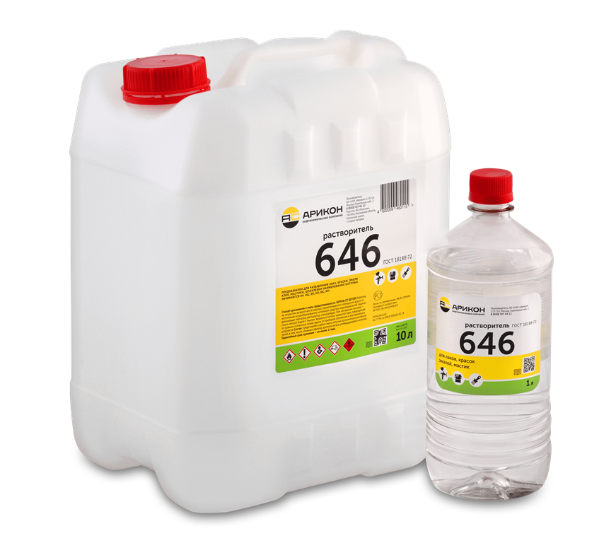 Растворитель для обезжиривания 646 имеет резкий, токсичный запах. Визуально выглядит как легкая желтоватая жидкость. Изначально растворитель использовался для разбавления краски и иных красящих составов, но в дальнейшем получил распространение как хороший обезжириватель поверхностей.