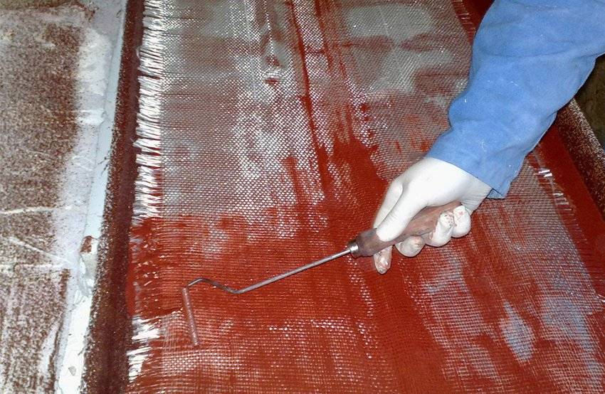 Мойка также обмазывается грунтом на этом этапе, но для ее укрепления используется более толстый стеклохолст.