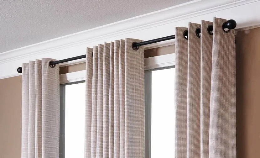 Создание неповторимой и комфортной атмосферы в жилой комнате требует непосредственного учета типа текстиля и варианта его крепления на карниз. Часто для экономии места устанавливают один карниз с двумя планками. На них одновременно можно навешивать тюль и шторы.