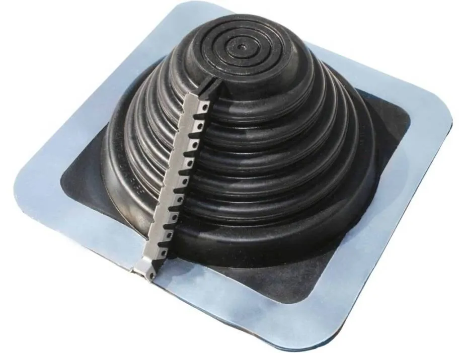 Мастер-флеш среди печников также называется проходкой, крызой, выдрой или просто флешкой. Эластичное приспособление предназначено для герметизации проема в крыше, через который проходит труба дымохода, вентиляции или канализационного стояка с круглым поперечным сечением. Конструкция представлена квадратной или прямоугольной площадкой-основанием, Фланец бывает дополненным усиливающей вставкой из алюминия, оцинковки или свинца. Конусообразный ступенчатый выступ может быть оформлен под прямым углом или с наклоном в 45 или 30 градусов.
