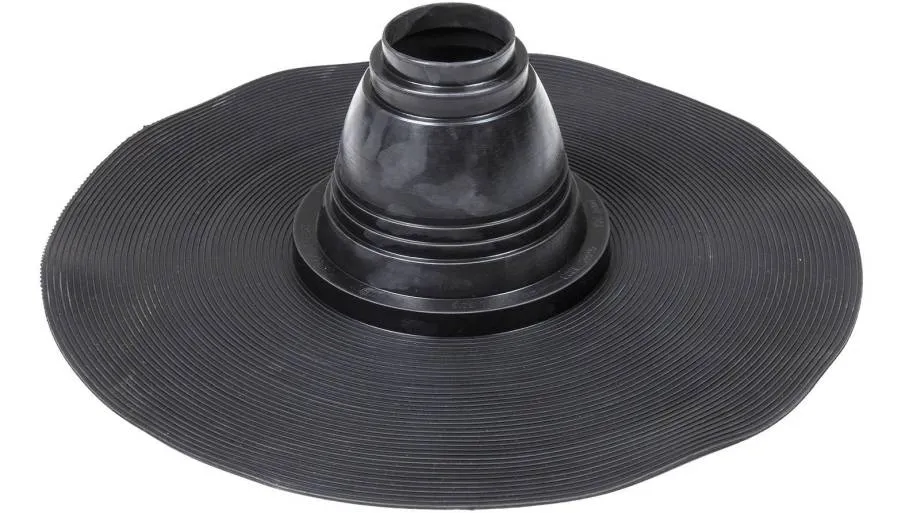 Одна из главных характеристик мастер-флеша для дымохода – эластичность. Благодаря этому тепловое расширение проходки не меняет ситуацию с герметичностью проема. Главное правильно подобрать диаметр конуса в его верхней части. Размер должен быть меньше поперечного сечения трубы примерно на 20%.