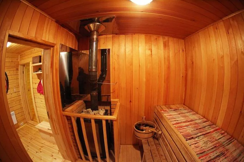 - Финская сауна. Разительно отличается от первого варианта температурой и влажностью. При 110-130 градусах Цельсия уровень влажности достигает всего лишь 10 процентов. Обязательно наличие предбанника, так как требуется значительное время на отдых после каждого посещения, которое длится обыкновенно не больше 10 минут.