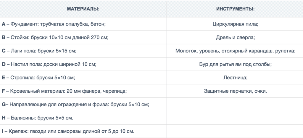 Материалы и инструменты для создания беседки