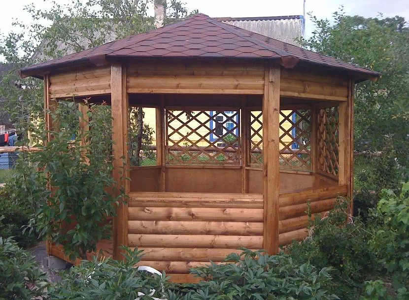 Современный рынок предлагает широкий ассортимент материалов для строительства восьмигранной беседки. Благодаря этому можно подобрать беседку на любой вкус и кошелек. Выделяют 5 основных материалов для строительства восьмигранной беседки.