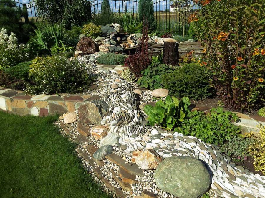 Сухой ручей на дачном участке отличается не только прекрасным внешним видом, но и простотой создания.