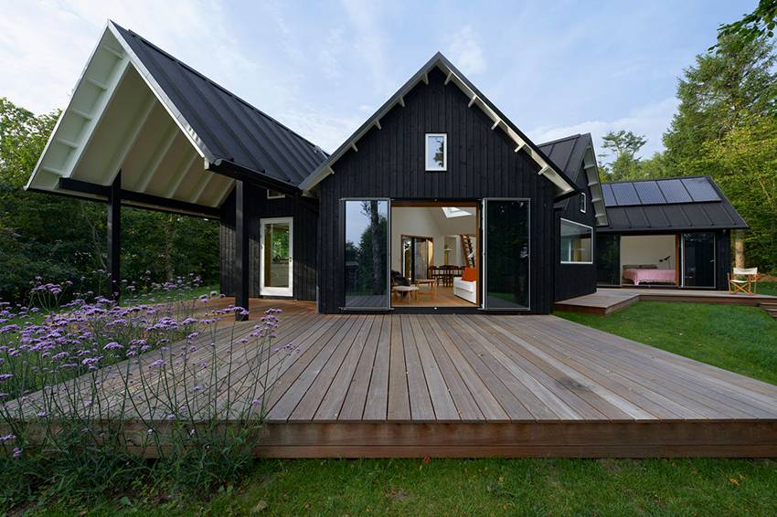 - Архитектура дома обязательно предусматривает большие окна, пропускающие много естественного света;