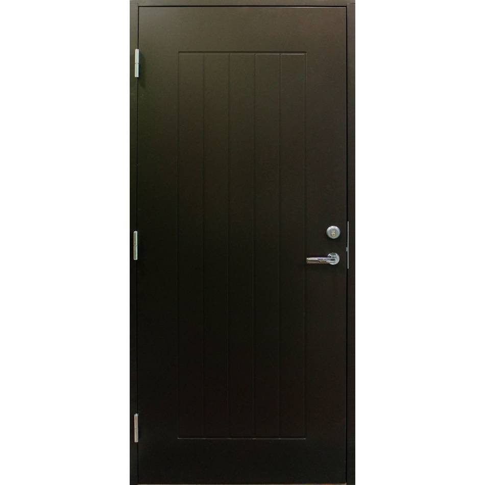 Edux LAHTI-EIKKA. Толщина двери составляет 6 см, глубина рамы из соснового бруса 11,5 см с толщиной 4,2 см. Высокий уровень изоляции от влаги достигается за счет использования двух алюминиевых листов с обеих сторон полотна.