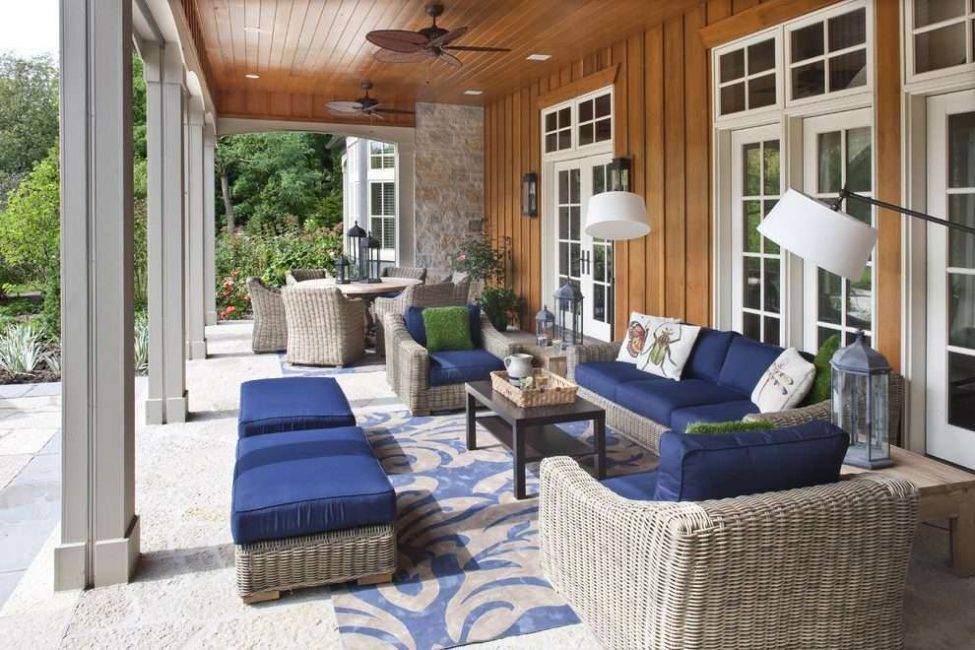 Открытая веранда наиболее подвержена воздействию погодных условий, не только полы, но и материалы, используемые для отделки, а также мебель должны быть влагостойкими, не бояться перепадов температур, воздействия ультрафиолета и как можно меньше выгорать на солнце: