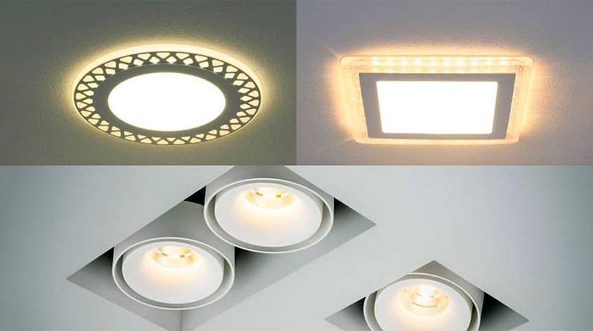 По конструкции типы точечных светильников для натяжных потолков делят на: