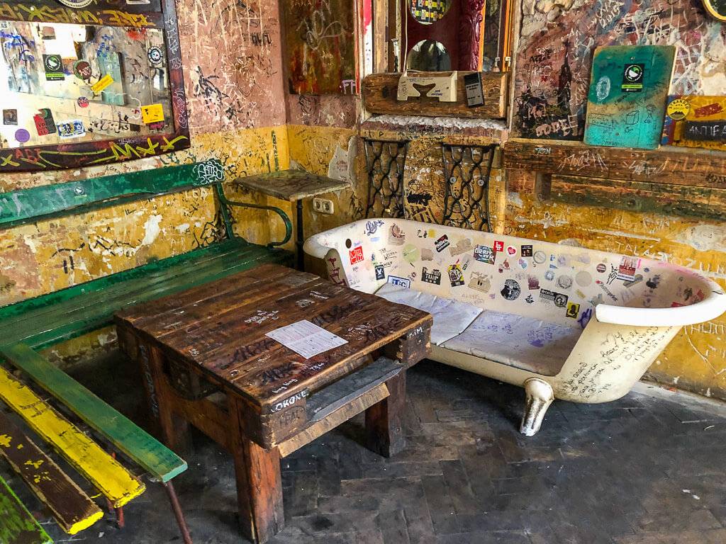 Szimpla Kert считается одним из лучших руинных баров Будапешта — он не раз входил в топ лучших баров мира по версии Lonely Planet. Здесь можно послушать музыку, выпить и потанцевать. Интерьер Szimpla можно разглядывать бесконечно — множество странных вещей и небольшие помещения без дверей, которые когда-то были жилыми комнатами, завораживают. В теплое время года открыт внутренний дворик — здесь часто выставляются картины местных художников.