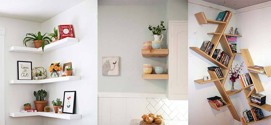 Для создания уютной обстановки в помещении применяются угловые полки, которые изготавливаются из различных материалов