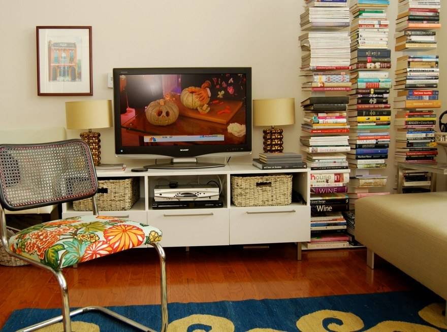 Полки на стене гостиной – незаменимый предмет интерьера. Диапазон их использования весьма широк. Любителям чтения пригодится вместительный стеллаж угловой с открытыми полками. Сэкономят свободное пространство настенные полки, размер и конфигурация которых выбирается с учетом предназначения. Большое количество книг требует установки объемной конструкции на стене