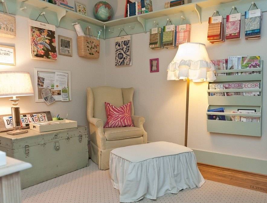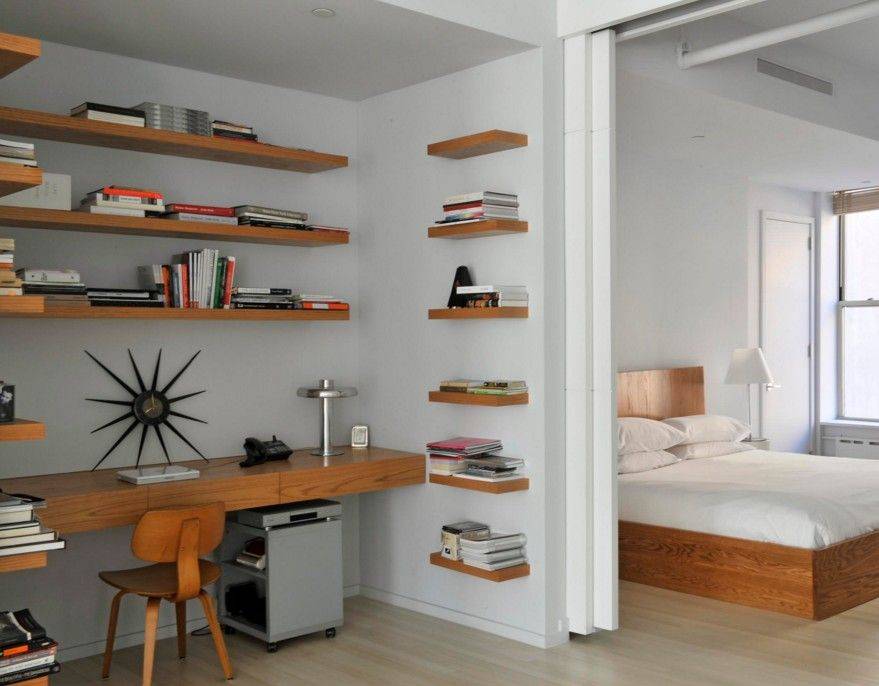 Очень важно, чтобы полки находились в свободной досягаемости. Это позволит организовать удобное место, за которым будет приятно работать