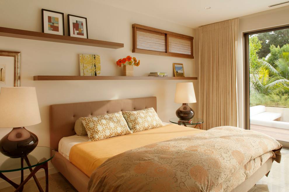Полки в дизайне спальни – их разновидности и особенности